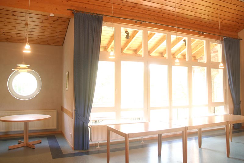 Acht Dreibett- und ein Vierbettzimmer befinden sich im Aschbacherhof. Neben dem kleineren Gruppenraum gibt es einen großen Gemeinschaftsraum mit genügend Platz für das gemeinsame Essen oder fröhliche Runden.